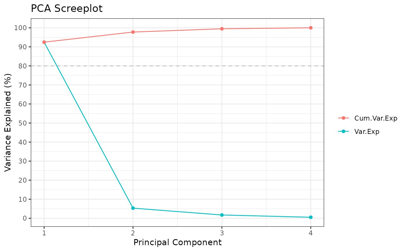 #> ** Cumulative var. exp. >= 80% at PC 1 (92.5%)